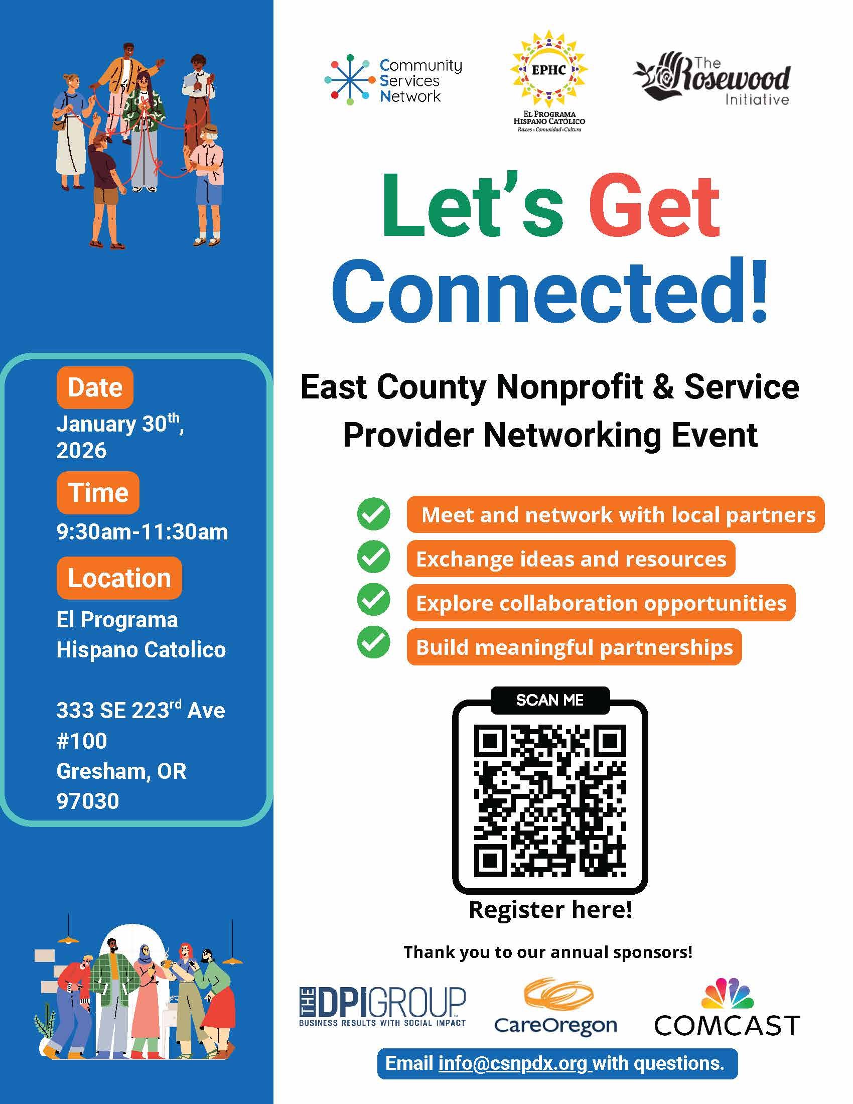 These events are designed to bring together service providers and nonprofits located in, or serving, East County. Our goal is to strengthen connections, exchange resources, and foster partnerships that create meaningful impact for our community.