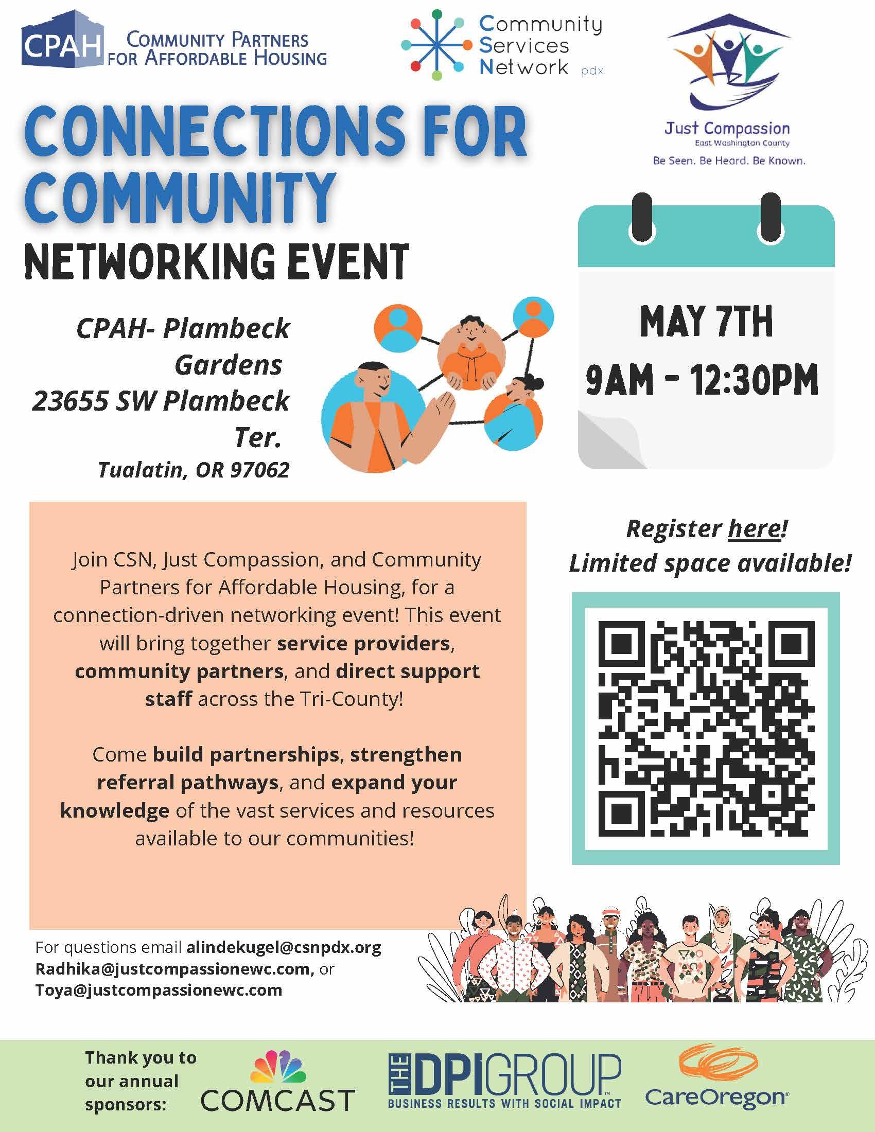 Join The CSN, Just Compassion, and Community Partners for Affordable Housing for our next Washington County Networking event! We're bringing together community partners, service providers, and direct support staff for a generative morning of connection, resource sharing, and learning!